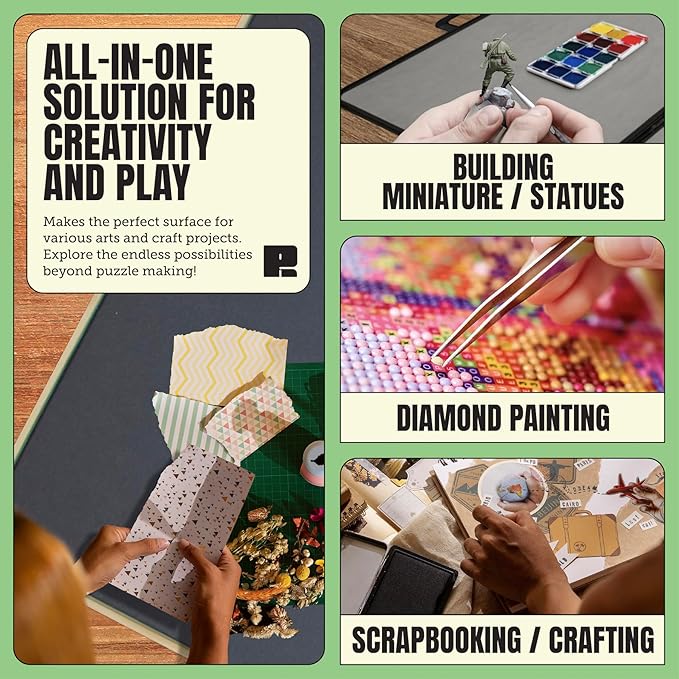 - Crafting Delight: Elevate your diamond painting with our versatile jigsaw puzzle table. Designed for comfort, it features a flat surface and built-in storage for your diamond art tools. Lightweight and easy to clean, it's your perfect crafting companion for any season. Master your craft with Puzzle Ready