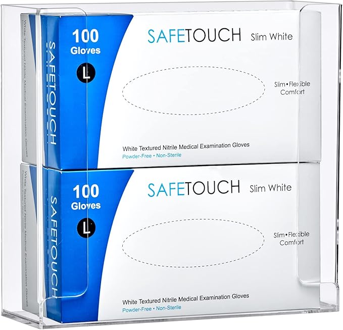 Amazing Abby Acrylic Glove Box Holder, Wall-Mounted Glove Dispenser, Floating Glove Box Organizer, Medium Size (for 2 Boxes), 10.5" W x 10.0" H x 3.5" D (Mounting Hardware Included)