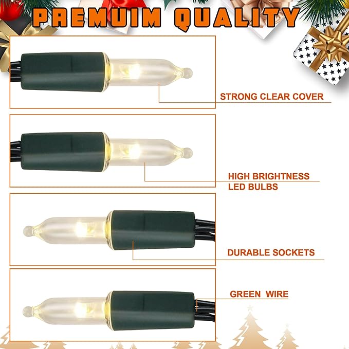 - 50 LED WARM WHITE LIGHTS: To keep it from falling and for lasting use, Joliyoou mini string lights make strong bulbs molded into sockets for a secure fit. With 50 LED bulbs in total, the string lights glow out great charming warm white lighting effect, surely adding great romantic touch to your holiday night