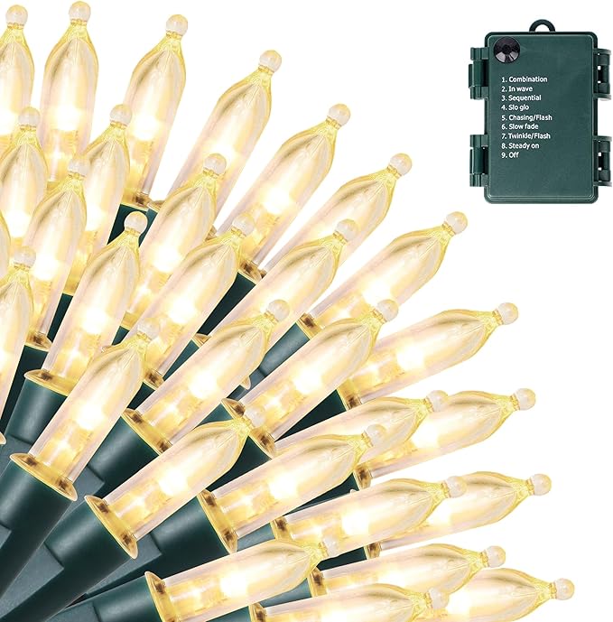 - BATTERY OPERATED WITH TIMER: 3 AA batteries are required for power supply (NOT INCLUDED). Press button on the battery case for 8 modes adjusting: COMBINATION, IN WAVES, SEQUENTIAL, SLOGS, CHASING/FLASH, SLOW FADE, TWINKLE/FLASH and STEADY ON. Just light up the light with any mode you like to create great festival holiday joy atmosphere