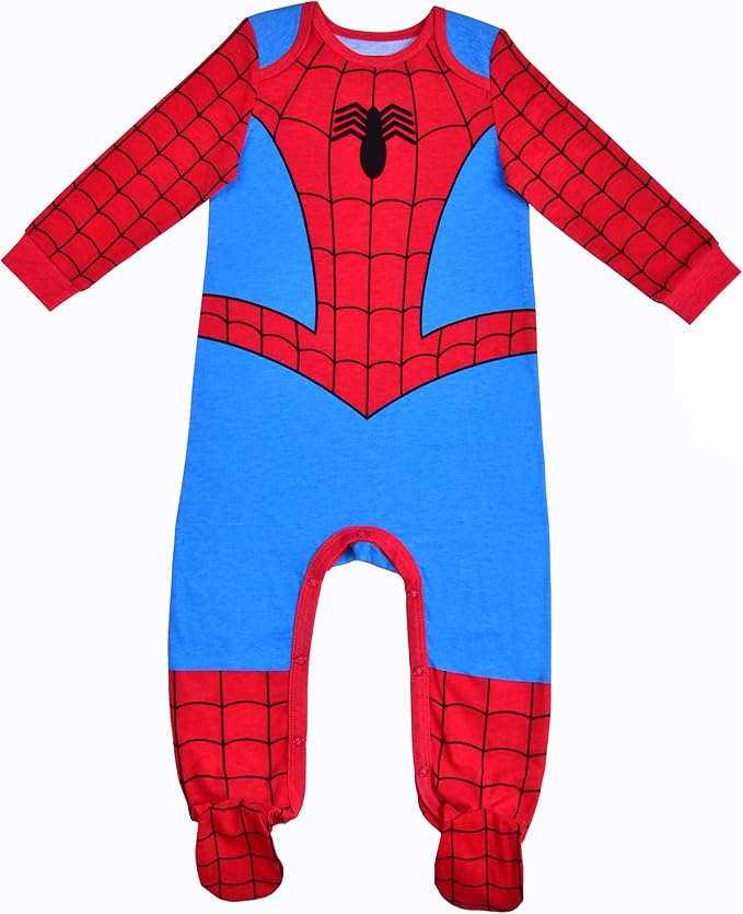 - Baby boys layette set for fall and winter seasons. A footies for your son or grandson, or for Marvel Spider-Man birthdays, playdates, and many other occasions. Match your baby boys clothes with his favorite Spider-Man socks, Spider-Man mask, Spider-Man backpack, and Spider-Man birthday party supplies