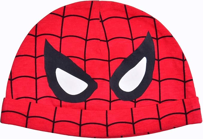 - Dress your baby boy in this 2 piece long sleeve romper and hat matching set featuring his favorite Marvel superhero, Spider-Man. Available in Sizes as newborn boy clothes, 3 months boy clothes, 6 months boy clothes, 9 months boy clothes, 12 months boy clothes, 18 months boy clothes and 24 months boy clothes
