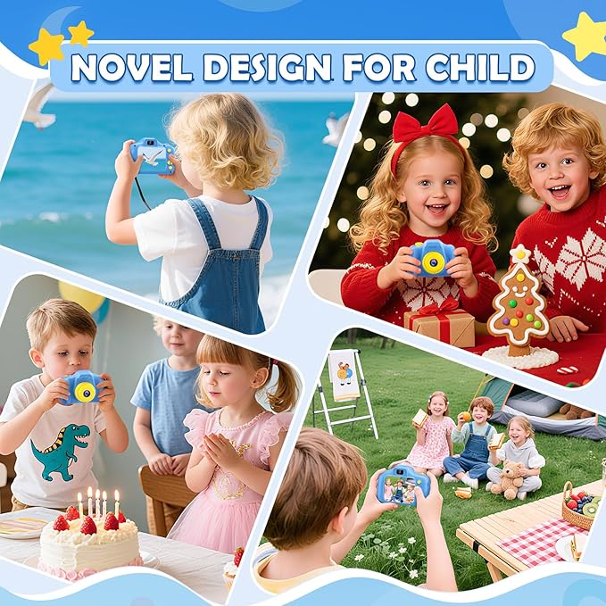 - good fun toy for kids--our kid camera comes with cute box which is the good gift for birthday ,Christmas ,Thanksgiving day ,holiday gift .our kids camera is specially designed for 3-8 year old toddlers, girls, boys .Simple operation, one-button photo no need focusing. The cute, mini size kids camera is suit for little hands, toy for kids.