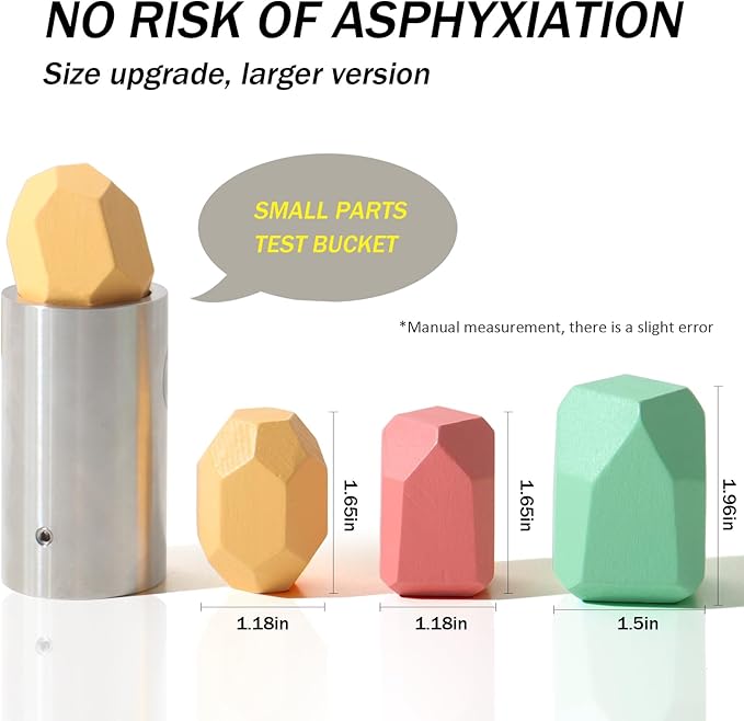 - SKILL DEVELOPING: The stone blocks have many flat cut surfaces so the stones can be stacked and kids can stack different shapes of stones to the highest. Unlike regular building blocks, this wooden stone balancing and stacking game is a better way to stimulate a child's sense of challenge and develop their hands-on skills, promote creativity, resilience and persistence and to strengthen fine motor skills, visual-spatial skills, color recognition and thus training logical thinking.
