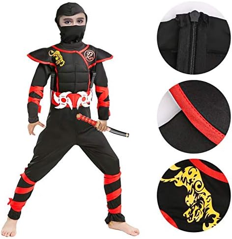- Kids Ninjago Costumes: 11 Pieces Total Boys Ninja Costume with abs Muscles for Kids. Ninja Halloween Costume for Boys with Included Accessories for Child Dress up Best Gifts