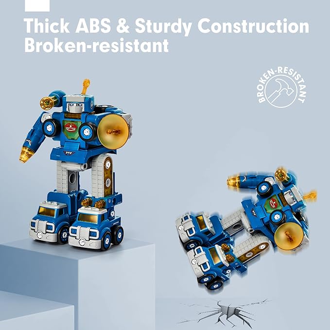 - Robot Sounds & Flashing Lights Fascinate Kids: Once the robot is completed, kids can activate flashing lights, and realistic robot sounds with a button on the top of the robot's head. These STEM toys are designed to encourage kids to construct and enhance kids' imagination and creative play. Additionally, all cars have turning wheels that can be easily pushed, allowing them to coast for quite a long distance