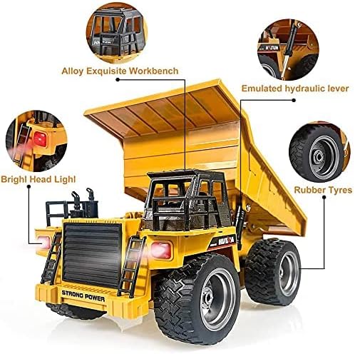 - 【 Full Functional Dump Truck】6 Channel Full Functional Dump Truck, Electric RC Remote Control Construction Mining Truck with Lights & Sound.Excellent for kids role playing games and perfect for sandpits.