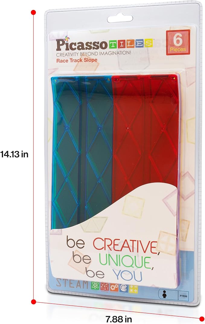 - DREAM BIG & BUILD BIG: Unlimited racetrack buildings awaits with scalable magnetic ramps, allowing imaginative assembly using 6 specialized slope pieces. Combine this Picasso expansion pack with any magnet tile block race track set for inventive designs. These educational toys fuel creativity, engineering curiosity, and constructive thinking, ideal for nurturing minds through open-ended STEM exploration.