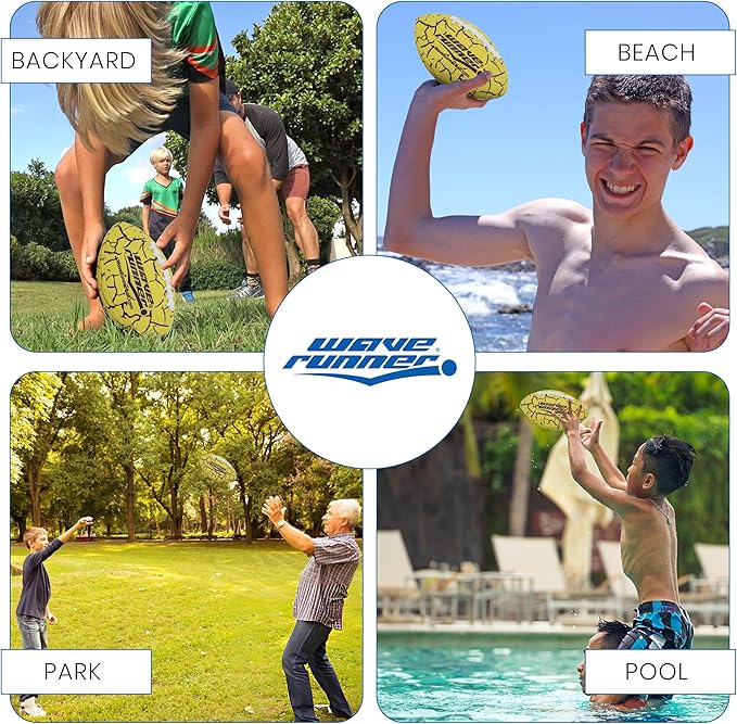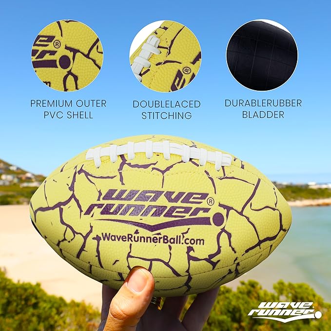 - All-Terrain Football for Any Adventure – Meet the Wave Runner Xtreme Grip-It Football, the ultimate all-terrain football designed for play anywhere—on the beach, grass, turf, street, and even in water! Whether it’s a backyard scrimmage or a game at the lake, pool, or park, this ball is built for action.