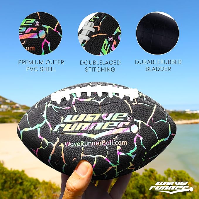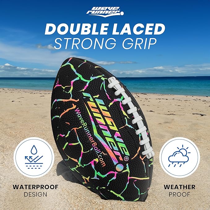 - All-Terrain Football for Any Adventure – Meet the Wave Runner Xtreme Grip-It Football, the ultimate all-terrain football designed for play anywhere—on the beach, grass, turf, street, and even in water! Whether it’s a backyard scrimmage or a game at the lake, pool, or park, this ball is built for action.