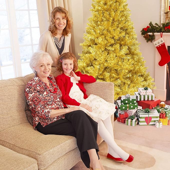 - High-Quality Tinsel Material: This Christmas tree is made of environmental-friendly PVC with odor-free tinsel film, which is non-flammable for safe use. Brighter color will illuminate your living space at Christmas. Fine craftsmanship ensures durability to use it indoors and outdoors without fading.