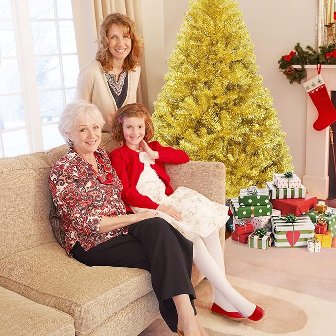 - High-Quality Tinsel Material: This Christmas tree is made of environmental-friendly PVC with odor-free tinsel film, which is non-flammable for safe use. Brighter color will illuminate your living space at Christmas. Fine craftsmanship ensures durability to use it indoors and outdoors without fading.