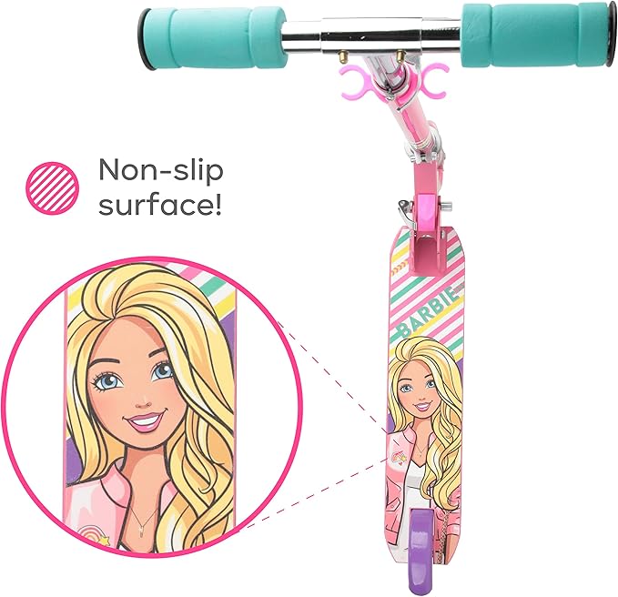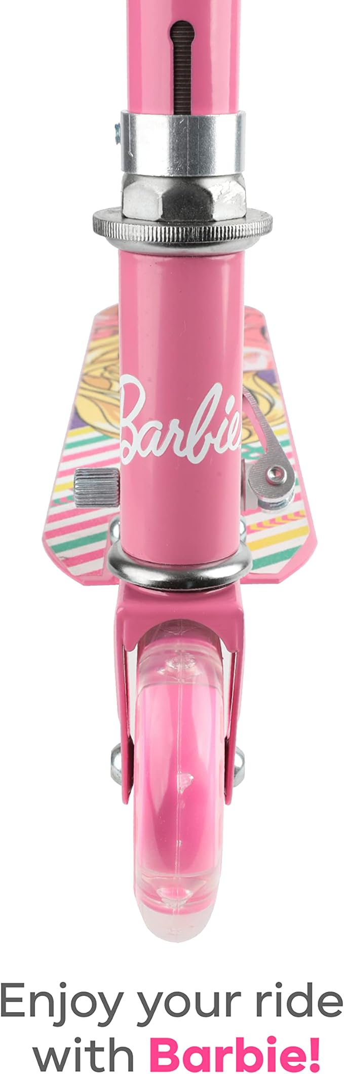 - Adjustable Handlebar: The Barbie kick scooter has wide handles that adjust to 4 different heights, as per the height and comfort of the rider, so that tall riders do not miss out on scooting fun. By adjusting heights, this scooter can grow together with your kids. You do not have to keep buying a new scooter every year! Perfect for kids, teens and adults.