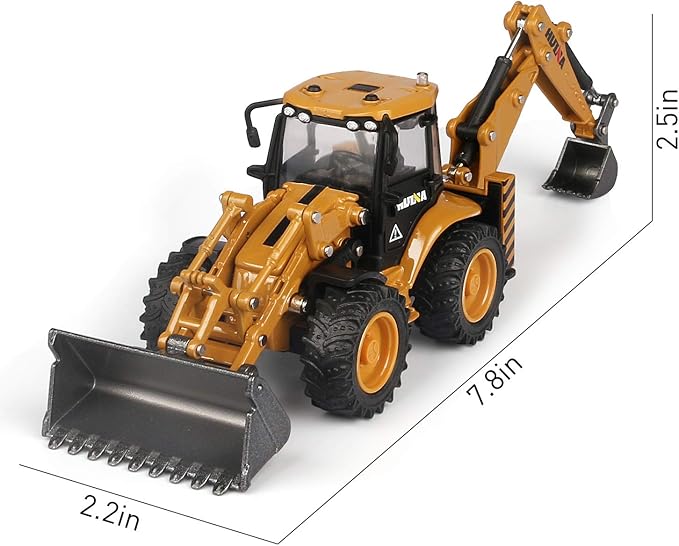 duturpo 1/50 Scale Metal Diecast Backhoe Loader Toy, Metal Play Construction Vehicles Trucks Toy for Boys
