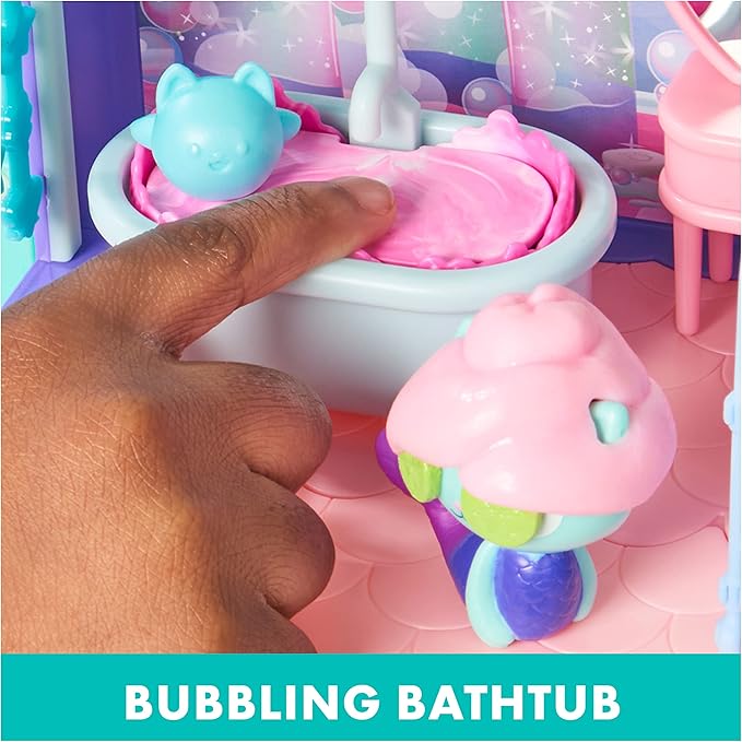Gabby's Dollhouse, Primp and Pamper Bathroom with Mercat Figure, 3 Accessories, 3 Furniture and 2 Deliveries, Kids Toys for Ages 3 and up