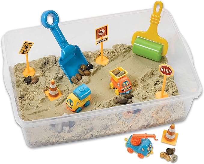 - CONSTRUCTION TOYS FOR 3+: Dig, build, and learn new sensory skills - one work zone at a time! This ultimate sensory bin is filled with 2.5 lb of easy-to-mold sensory sand, sensory toys, and more! Just add imagination for hours of hands-on play