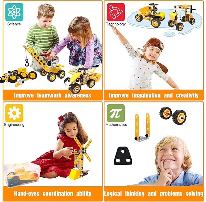 - STEM Education Through Playing 一 Fun and interesting educational toys are designed to improve your children's Science, Technology, Engineering, and Math skills through playing. Keeping children engaging for 1-2 hours each day can enhance his concentration and hand-eye coordination, develop their independent, confident and practical ability.