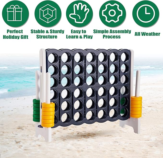 - Giant Educational Family Game: The Jumbo 4-to-score giant game is a classic strategy game, which is designed for exciting competition! It is suitable for courtyard, balcony, at a birthday party or on a barbecue. This board game can exercise strategy skills, cognitive ability, mind thinking and more.