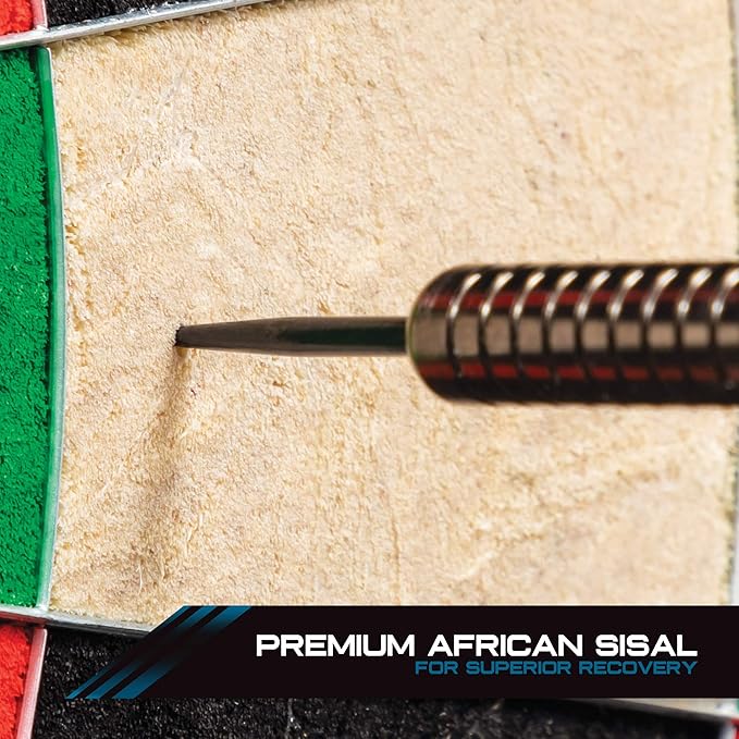- SELF-HEALING SISAL FIBER - This dartboard is made of high-density, sisal fiber that naturally heals itself, ensuring long-lasting durability for shot after shot without visible holes. Complete with a heavy-duty steel spider frame for durability.