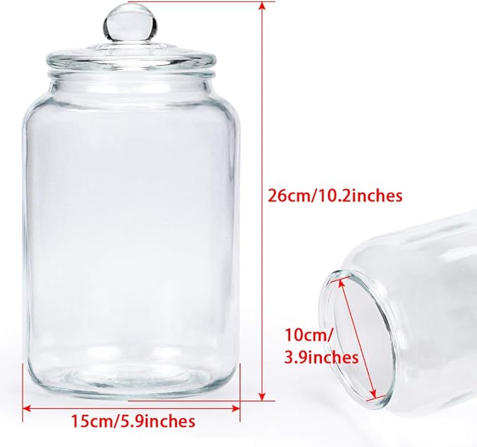 - SIZE: Jar mouth diameter measures 3.9 inches, total height including lid is 10.2 inches, jar diameter is 5.9 inches, easily holds up to 3L/101oz