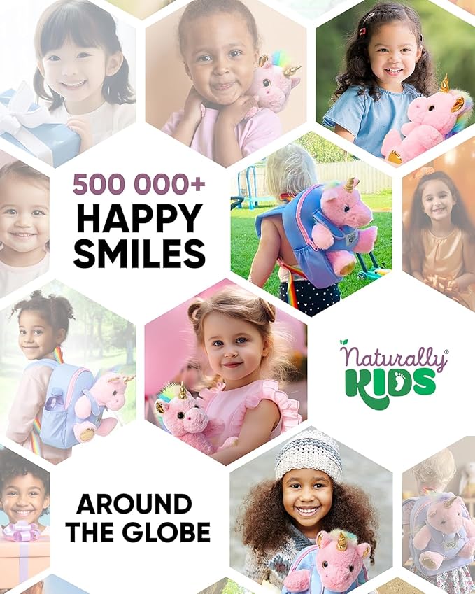 Naturally KIDS Pink Unicorn Toys, 3 Year Old Girl Gifts, Birthday Gifts for 2 Year Old Girls, Toddler Unicorn Backpack