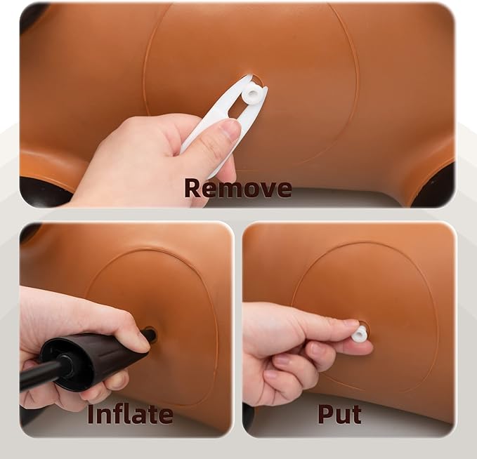 - [EASY TO INFLATE, LONG-LASTING PLAY] Inflating this hopper is quick and simple—just remove the white plug, insert the pump tip, and inflate to the desired size. The snug air plug ensures it stays inflated, letting kids enjoy their outdoor ride on toys for toddlers 1-3 for extended periods. It’s the ultimate toys for ages 2-4, designed for hassle-free fun