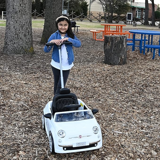 Best Ride On Cars Fiat 500 Push Car, with Stroller, Adjustable Footrest and Handle, Horn, Music, Stable Wheels, For Kids Aged 2-3 Years, 37 x 19 x 12 inches, Large, White