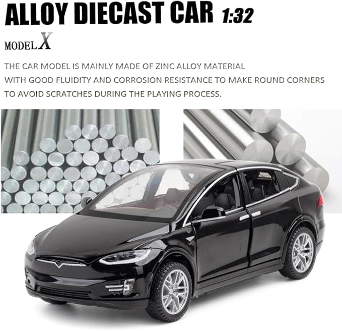 1:32 Scale Car Model X Alloy Diecast Pull Back Electronic Toys with Lights and Music, Mini Vehicles Toys for Kids Gift Car Lovers Collection (Model X - Noble Black)