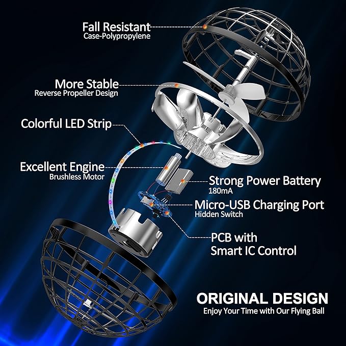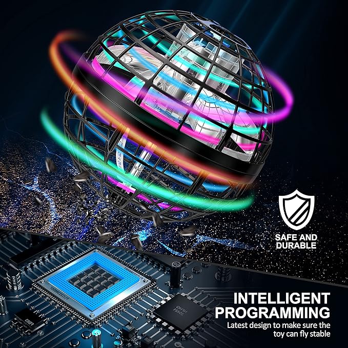 - High-tech Hand Controlled Drone with no remote: The flying toys will magically fly in the opposite direction when your hands are close to it. put your hands underneath it, it will fly upwards. Start the interactive play just by throwing the mini drone in the air grab & flip it to stop.The propellers is inside the samll orb / ball drone toys. No worries of hurt by propellers for kids