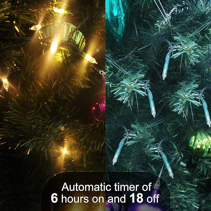 - Timer Function: Built-in timer (6 hours ON and 18 hours OFF) will free your hands to turn on/off the Christmas lights and keep battery last as long as possible.This battery operated string lights is warm white, no harsh on eyes at night, comfortable and relaxing.