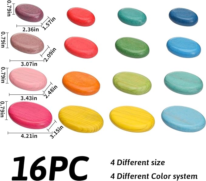 OESSUF 16pcs Extra-Large Wooden Sorting Stacking Rocks - Safe Montessori Toys for 1-3 Year Old, Waldorf Wooden Blocks for Toddlers 1-3, Smooth Stacking Stones for Toddlers, for Kids