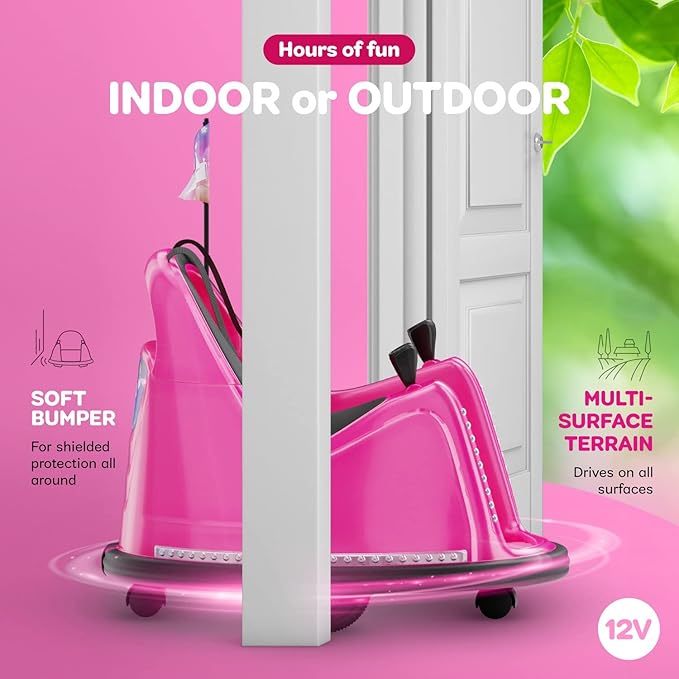 - SAFETY FIRST: The safety of your precious little one is our top priority. The first ride-on bumper car with a 5-point harness. Includes anti-flat tires, optional parent-only mode, and complies with all safety regulations (ASTM-certified).
