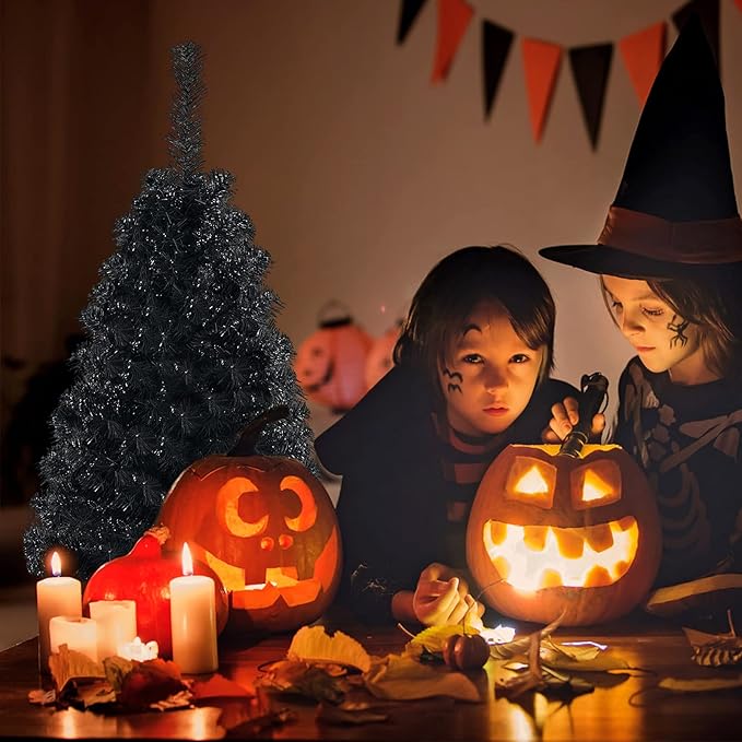 - Space-saving Design for Narrow Space: Aiming to emulate a real pine tree, the realistic Halloween tree has a unique black color. This compact 3ft artificial tree can be used in some narrow space and tight corners to increase mysterious atmosphere. It is a great decoration for indoor space, especially for staircase and passageway.