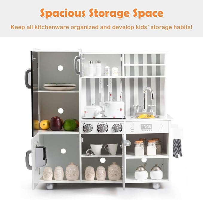- 🧑🍳【Perfect Gift for Kids】This realistic-looking pretend kitchen makes an unforgettable gift for girls and boys. It is perfect for birthdays or Christmas. Choose wooden play kitchen as a companion for your child's growth and create happy childhood memories.