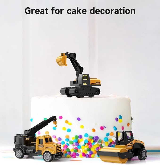 - Great Gift Idea: These Engineering trucks could stimulate kid's imagination and encourage hand-eye interaction.You could set these as Birthday Cake Topper for Kids who love construction vehicles.And these are Great for Back to school, Thanks giving, Christmas, New Year, Easter, kids' birthday gift,party favors,cake topper,collection and home decoration.
