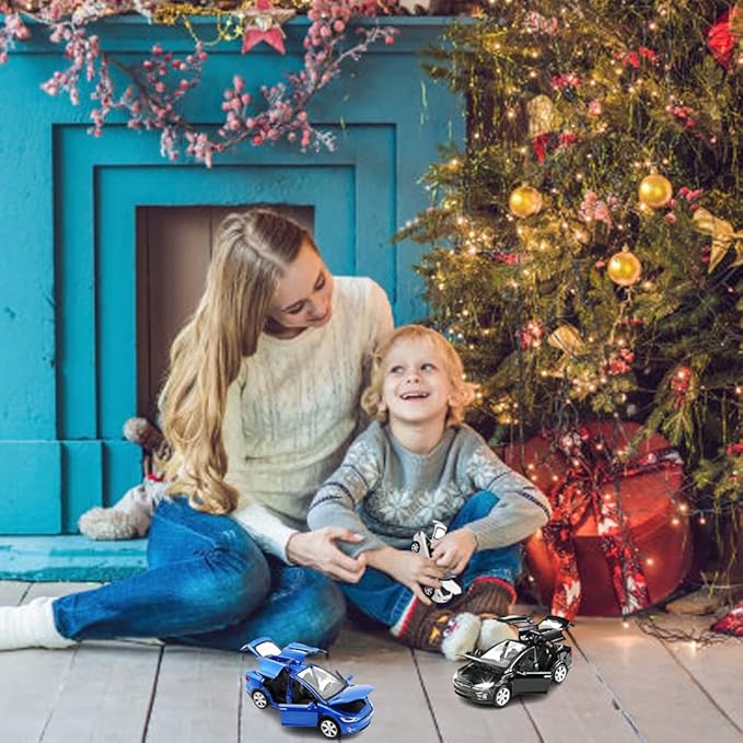 - 【Tesla car Model X Design】Doors, hood and trunk can be opened,acousto-optic function,pull back car,The surface of the model car toy is smooth and comfortable to the touch.