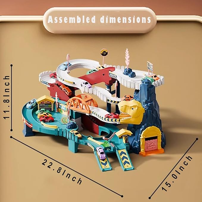- 🎁 THE PERFECT GIFT – Looking for a gift that will encourage creativity and give children hours of enjoyment? This gift is ideal for Christmas and birthdays. Our toy car and Dinosaur track makes an awesome gift. This cars set is easy to build and includes a variety of features and numerous fun accessories. You or your child can set these car sets for boys up on a table or on the floor.