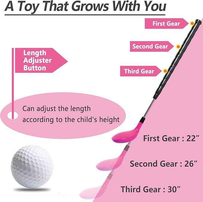 iPlay, iLearn Girls Pink Golf Toys Set W/Left & Right Club Head, Kids Outdoor Sport Toy Age 3-5, Toddler Indoor Golf Ball Game, Child Active Exercise Yard Play Birthday Gifts for 4 6 7 8 Year Olds Boy