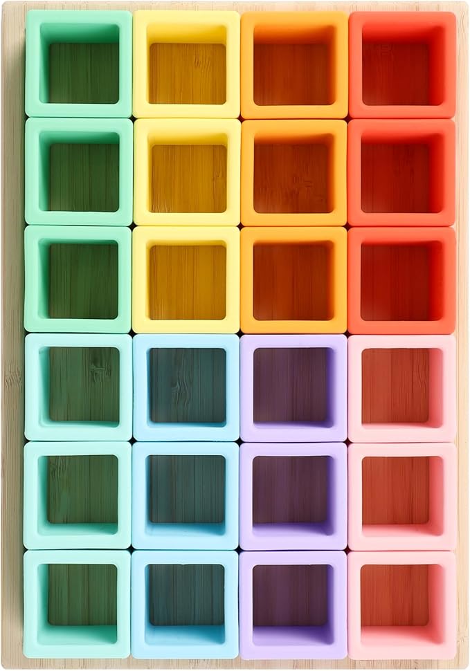 - Sort, Stack and Play - Soft, durable, and easy to clean, our food-grade silicone building blocks are the perfect open ended Montessori rainbow toy for children that love to sort, stack, chew, and knock things down.