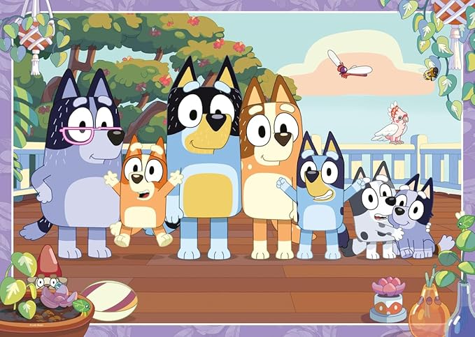 - Join Bluey and her family in this fun packed 24 piece Giant Floor jigsaw puzzle.