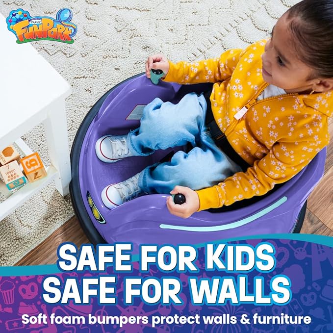 - SAFETY FIRST: Soft bumpers protect your walls and furniture, while the adjustable seat belt keeps your child safe and secure. Sturdy plastic shell and anti-flat tires make sure this kids electric bumper car stays in great shape
