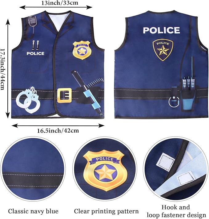 - 【Police Accessories】This police vest is made of qualified polyester,features clear printing and hook and loop fastener design,easy to wear.Just pair it with the other realistic police equipment will provide immersive experience in role-playing.
