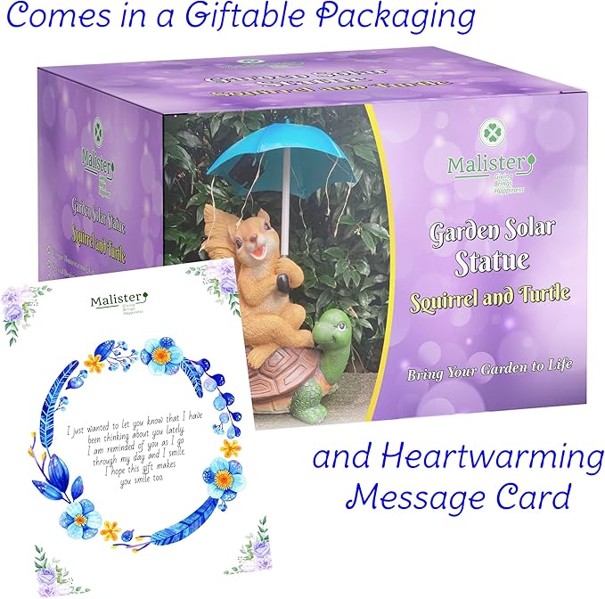 - [ BEST GIFT ]: Are you looking for a great gift for your love ones? Look no further for this wonderful Garden Squirrel and Turtle Figurines Decoration, including our special message card. The Turtle Statues can be great housewarming garden gifts, turtle gifts that will leave your friends or family speechless, especially if they live long-distance.