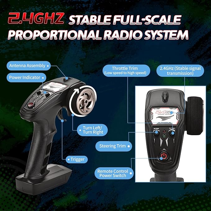 - This rc cars for boys age 8-12 equipped with 2.4 GHz full-function remote control system and can be proportionally controlled to throttle and speed. Our rc trucks deliver superior 300 feet range, precision control. Reliable transmission forward, brake and reverse would never fail.