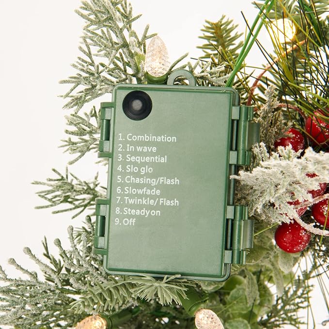 - BUILT-IN LIGHTING: Pre-strung with 50 battery operated LED lights (warm white) with integrated timer (6 hrs on/18 hrs off). 3 AA batteries are required, not included.