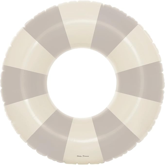 Petites-Pommes Pool Ring Float for Kids - Durable Inner Tube, Handprinted Classic Striped Design Swim Tubes, Soft Comfort Seaming, Packable Floats for Travel, Beige, 35 inch