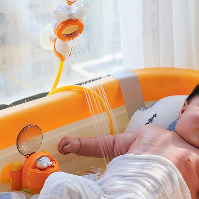 - Sensory Development Bath Toys: Battery-operated bath nozzle, bath water sprayer easily connects to the bathtub and pumps water from the bath, no water wastage, bring the fun of spraying. Batteries are not included. The bath water sprayer toy promotes sensory development and helps develop fine motor skills.