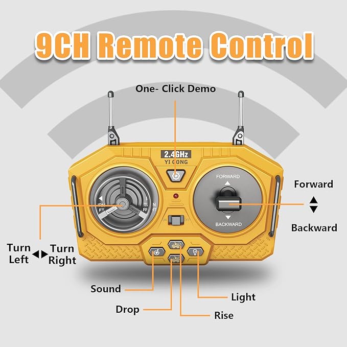- 【Feature-Rich】Kids will be surely stunned by rich functions: Up and Down at a 45 degree angle Dump Bed, omni-direction rotation, auto pilot and other fluid movements.