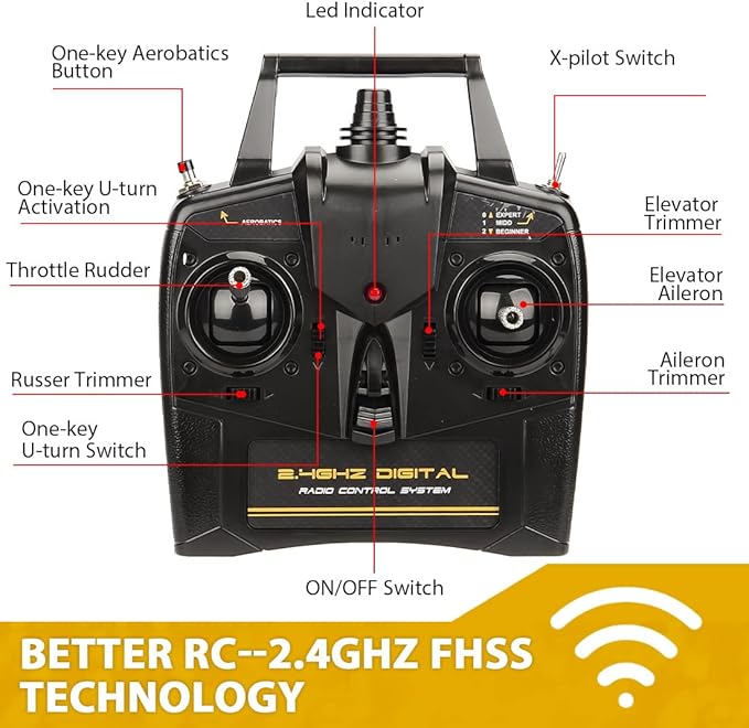 - 【Frequency-Hopping Spread Spectrum】2.4Ghz FHSS RC technology allow more than 20 aircraft's to fly at the same time and flying up to 656 ft, the strong anti-interference ability allows to hold a small flight club party between you and your friends.