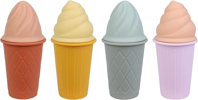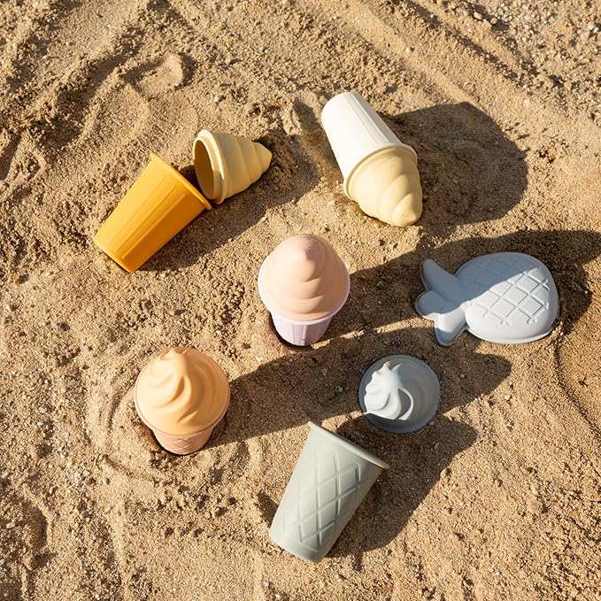 - Silicone Ice Cream Sand Toys - Our ice cream toy molds are perfect for a fun day at the beach. Made from silicone, they are made to last and are travel-friendly. Each set has four ice cream cones and tops that can be mixed and matched, encouraging creative, open-ended play.